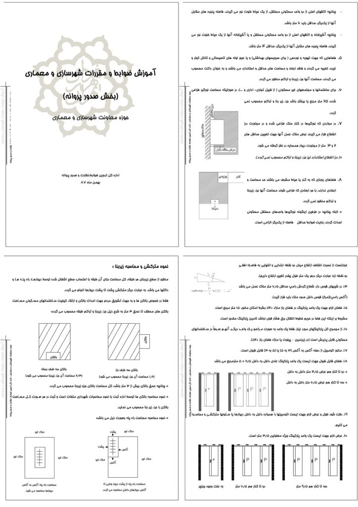 • حریم معابر، ضوابط نما، پیشآمدگی، و الزامات شهرسازی